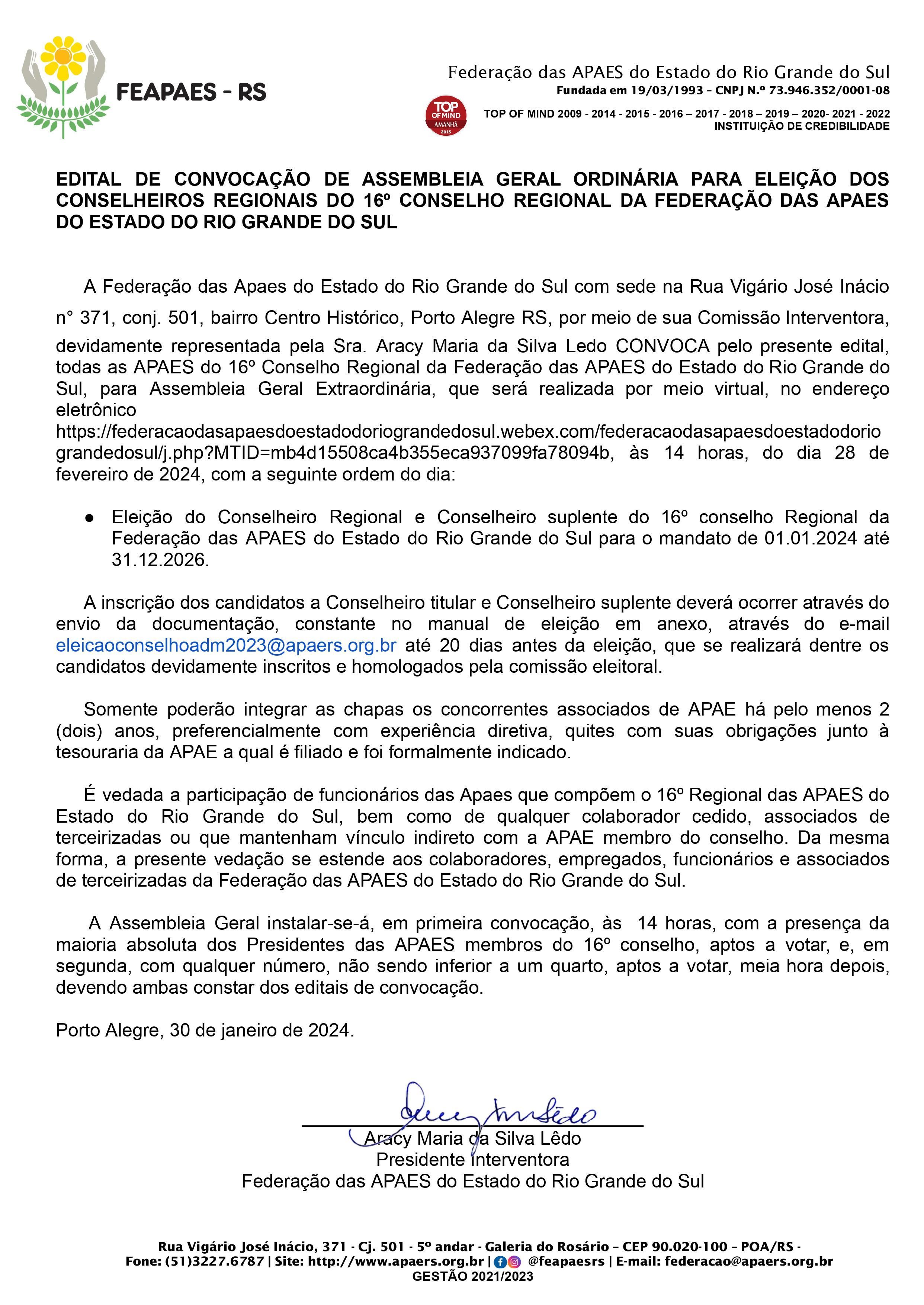 FEDERAÇÃO DAS APAES DO ESTADO DO RIO GRANDE DO SUL