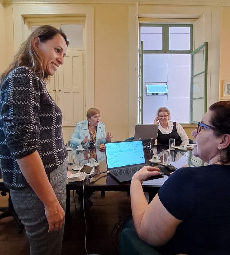 Durante o encontro, Joseane Cancino, Coordenadora de Educação e Ação Pedagógica da FeapaesRS, acompanhada de Roberto Salaberry, Procurador Jurídico da instituição, apresentou o instrumento avaliativo para ser implantado, atendendo a demanda de análise educacional dos estudantes. Os presentes apreciaram o documento online e deram suas contribuições para o refinamento e aperfeiçoamento. Em próxima reunião já marcada para o dia 15/8, esta etapa será concluída e avançará para os testes de aplicação, para a conclusão da renovação do termo de parceria.