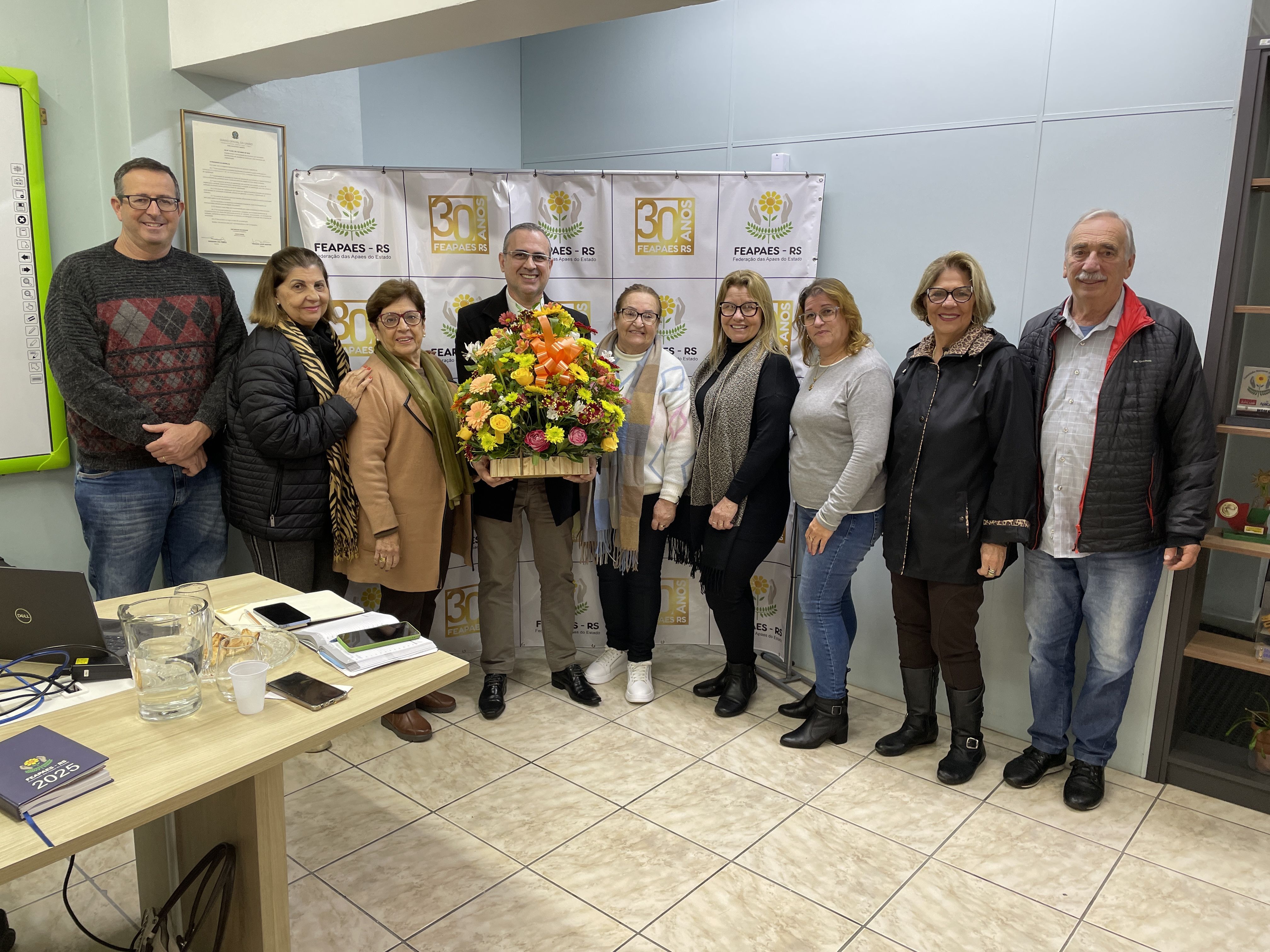 No dia 17/6/2025, a Diretoria da Federação das Apaes do Rio Grande do Sul – Feapaes-RS realizou reunião nas dependências de sua sede. Na ocasião, Aracy Maria da Silva Lêdo, a presidente eleita para a Gestão 2024/2026, apresentou seu comunicado de afastamento definitivo por motivos de saúde. Ela que já estava temporariamente afastada desde janeiro de 2025. De acordo com as regras estatutárias, assume a presidência, a partir desta data, Marco Antonio Moresco.