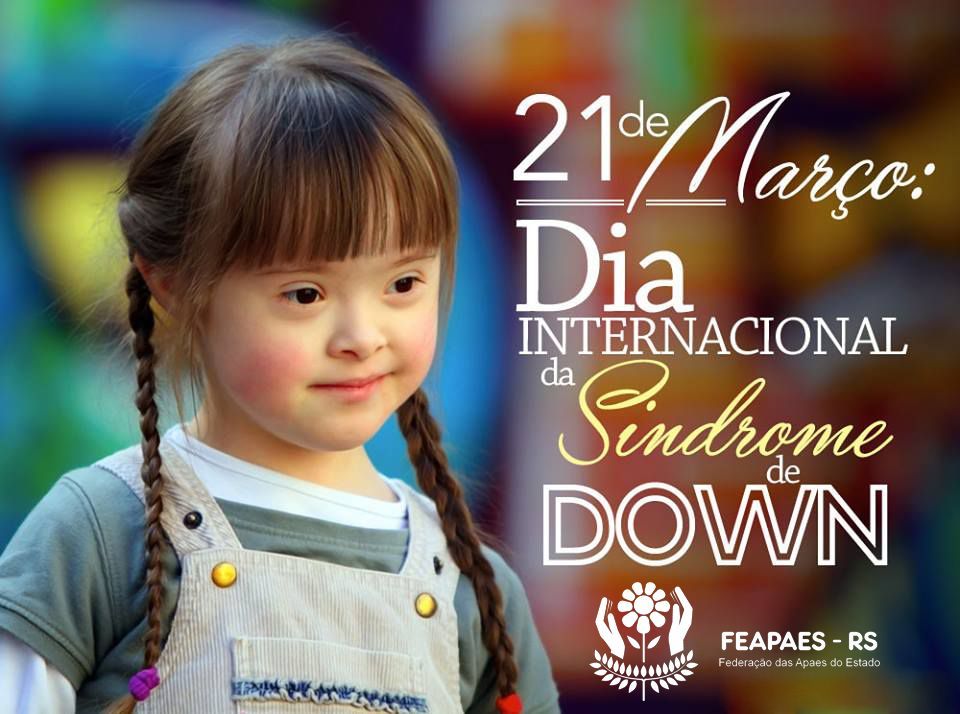 Dia de conscientizar as pessoas da importância da luta pelos direitos igualitários, bem-estar e inclusão das pessoas com Síndrome de Down. O Down não é uma doença, mas uma mutação genética que durante a gestação, são formados 47 cromossomos, sendo que o comum são 46.