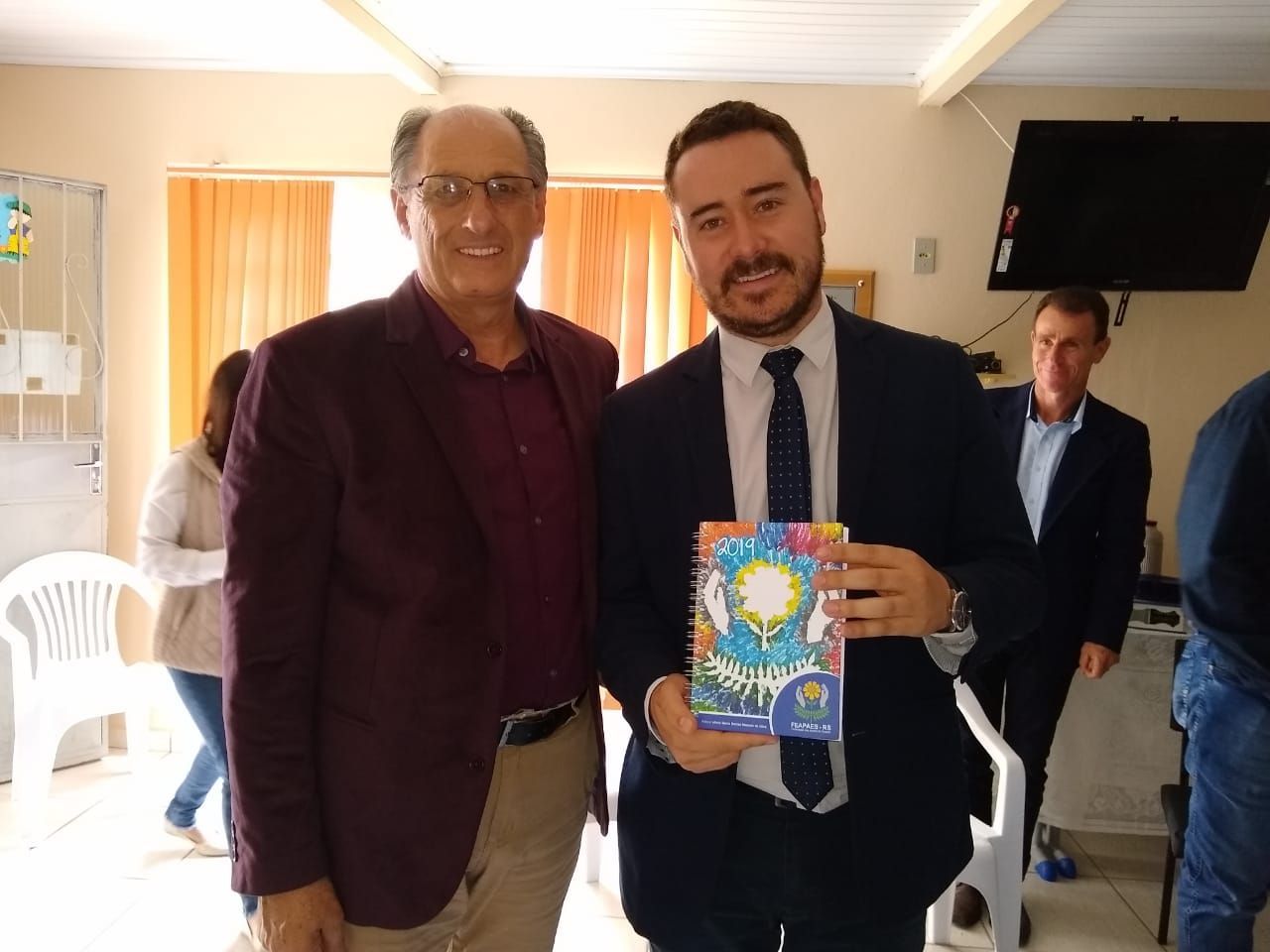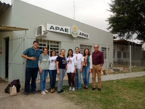 Presentes: APAE de Bagé Sr. Luiz Cesar Silva- Presidente, Fernanda Oliveira- Gerente administrativa e Fabiana Borges- Assistente Social, APAE de Pinheiro Machado Sr. Diego Howes – Presidente, Sr. Pedro Araújo – Diretor de Patrimônio, APAE de Lavras do Sul- Helen de Souza- Presidente.