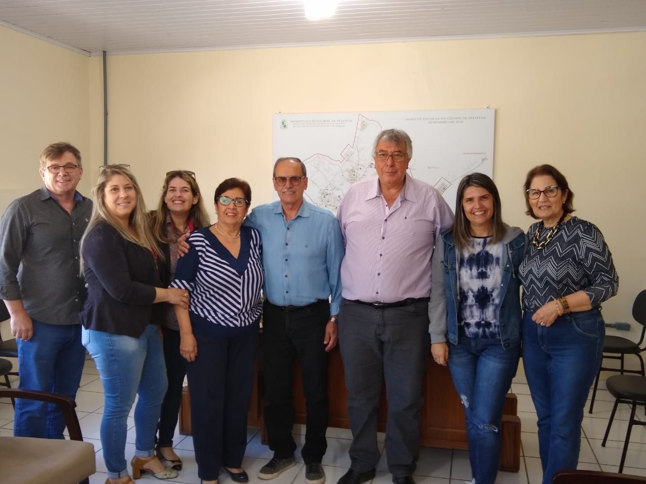Participaram da reunião a professora Simone Carvalhar, Maristela Teixeira, o assessor financeiro, Jairo Borges, e Cristiane Queilmento, além da Ex-presidente da Fenapaes e da Feapaes-RS, Aracy Ledo, e a Diretora Pedagógica da Feapaes-RS, Lucia Centena.