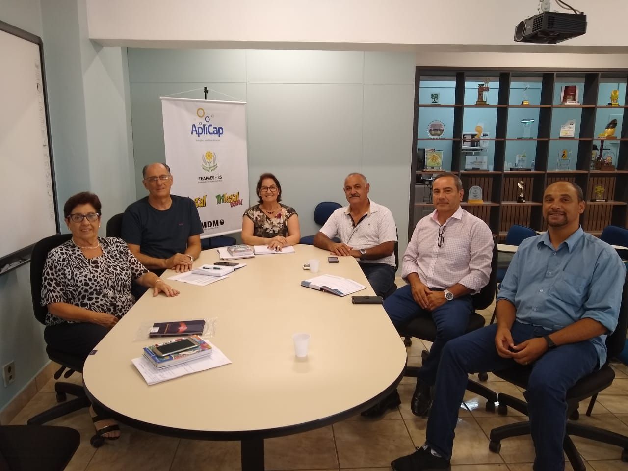 Sr. João Carlos Caldeira, acompanhado do Sr. Fernando Ribeiro e o Sr. David Ferreira visitam a Sede da FEAPAES-RS.