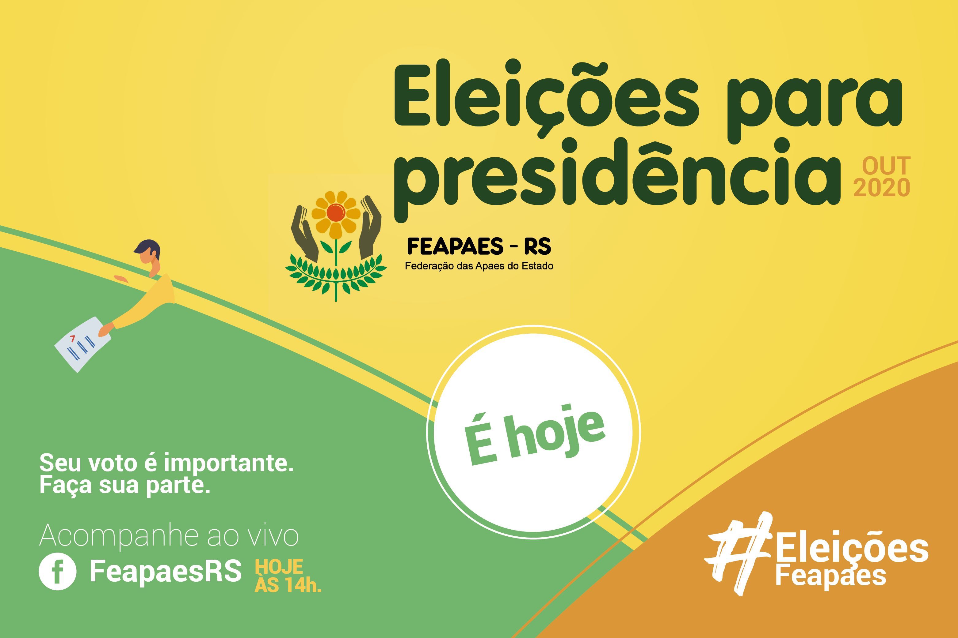 Hoje acontece a eleição para a escolha da diretoria da Federação das Apaes do RS, para triênio 2021/2023.