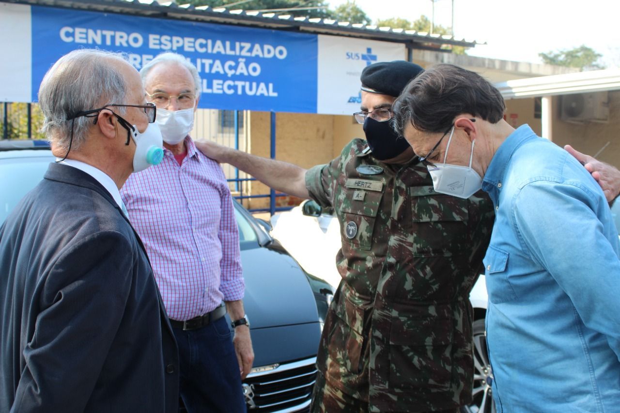 Na última quarta (18), a APAE de Santa Maria recebeu a visita do General Hertz Pires do Nascimento, comandante da 3ª Divisão do Exército. A visita se deu a convite do empresário Carlos Costabeber, apoiador da APAE. As boas vindas na instituição foram dadas pelo Presidente Robson Aita, seu vice Rosélio Raddtz e o Diretor Financeiro Luis Carlos Brum. O General conversou com profissionais da APAE e apreciou as instalações da Instituição. A visita visa uma possível parceria entre o Exército e a Instituição.