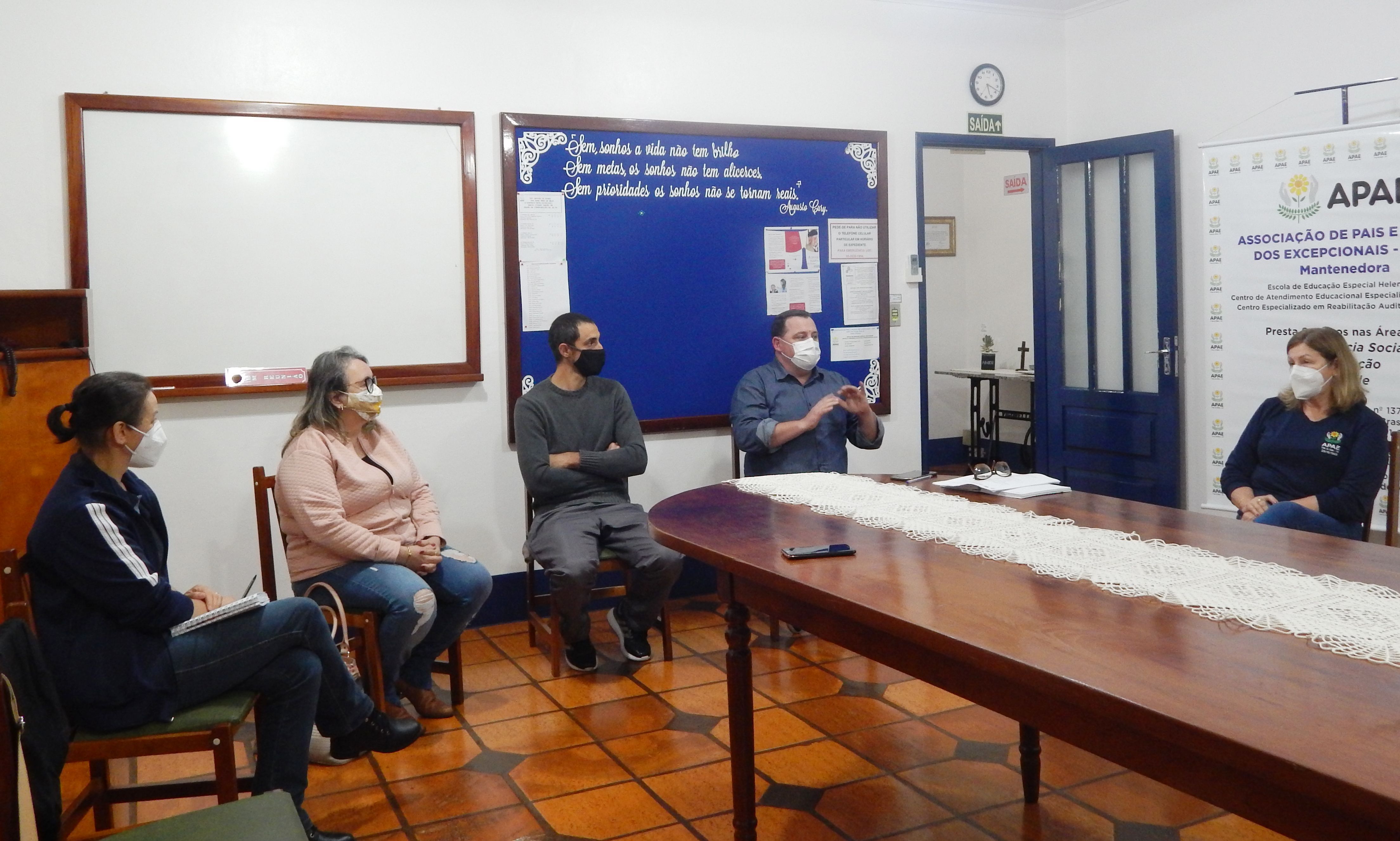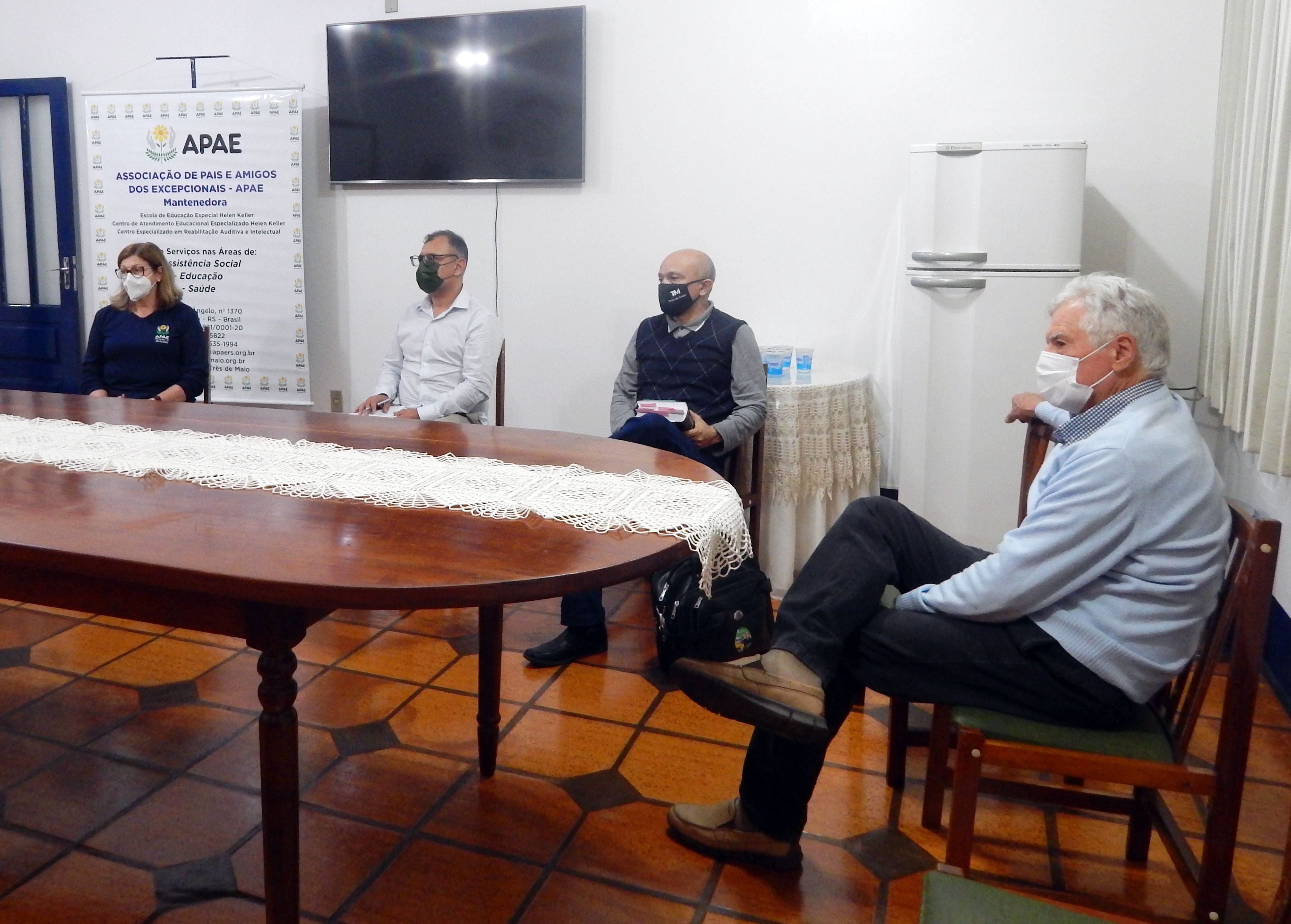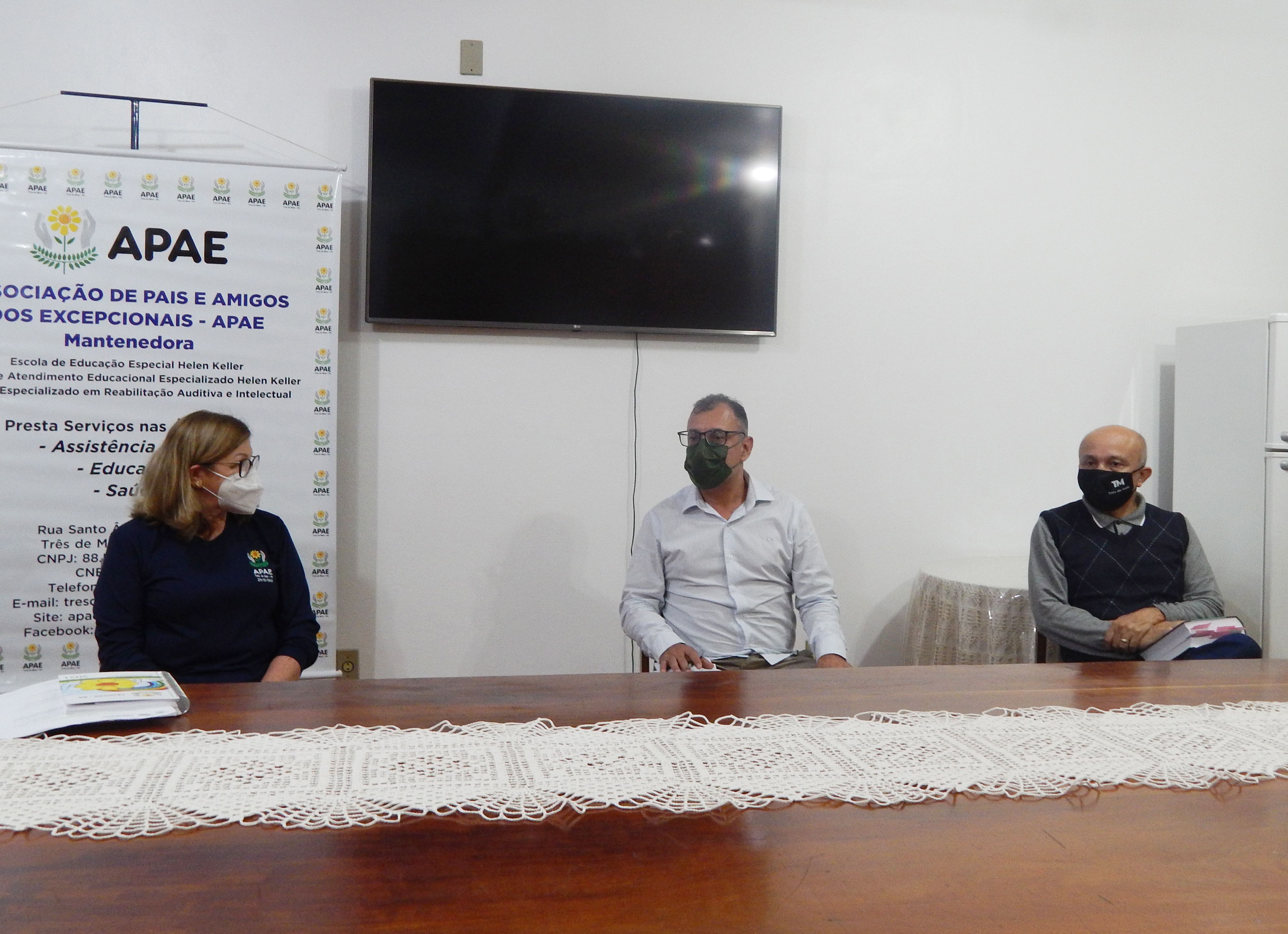 Na quarta-feira (25), a Apae Três de Maio recebeu a visita do prefeito, Antônio de Oliveira, e do coordenador de trânsito do município, Major Paulo Roberto do Nascimento. Na visita, os dois estiveram apresentando e debatendo ideias de oportunizar vagas de estacionamento especiais para quem transporta pessoas com deficiência intelectual e autismo.