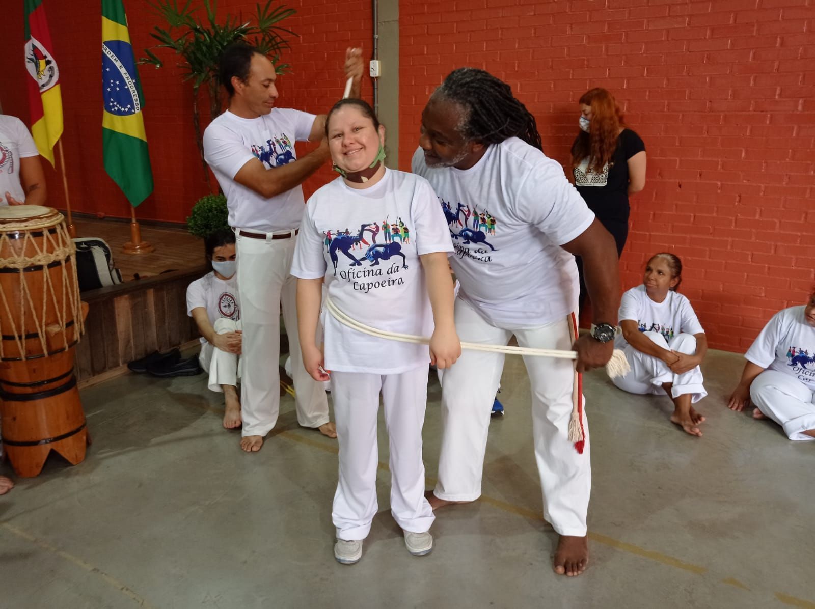 Na última terça-feira (15 de março) ocorreu o VI Batizado e Troca de Cordas da Apae Vacaria. O projeto de capoeira que ajuda as pessoas com deficiência intelectual e múltipla a desenvolver equilíbrio, as habilidades motoras,a percepção do outro e a concentração.