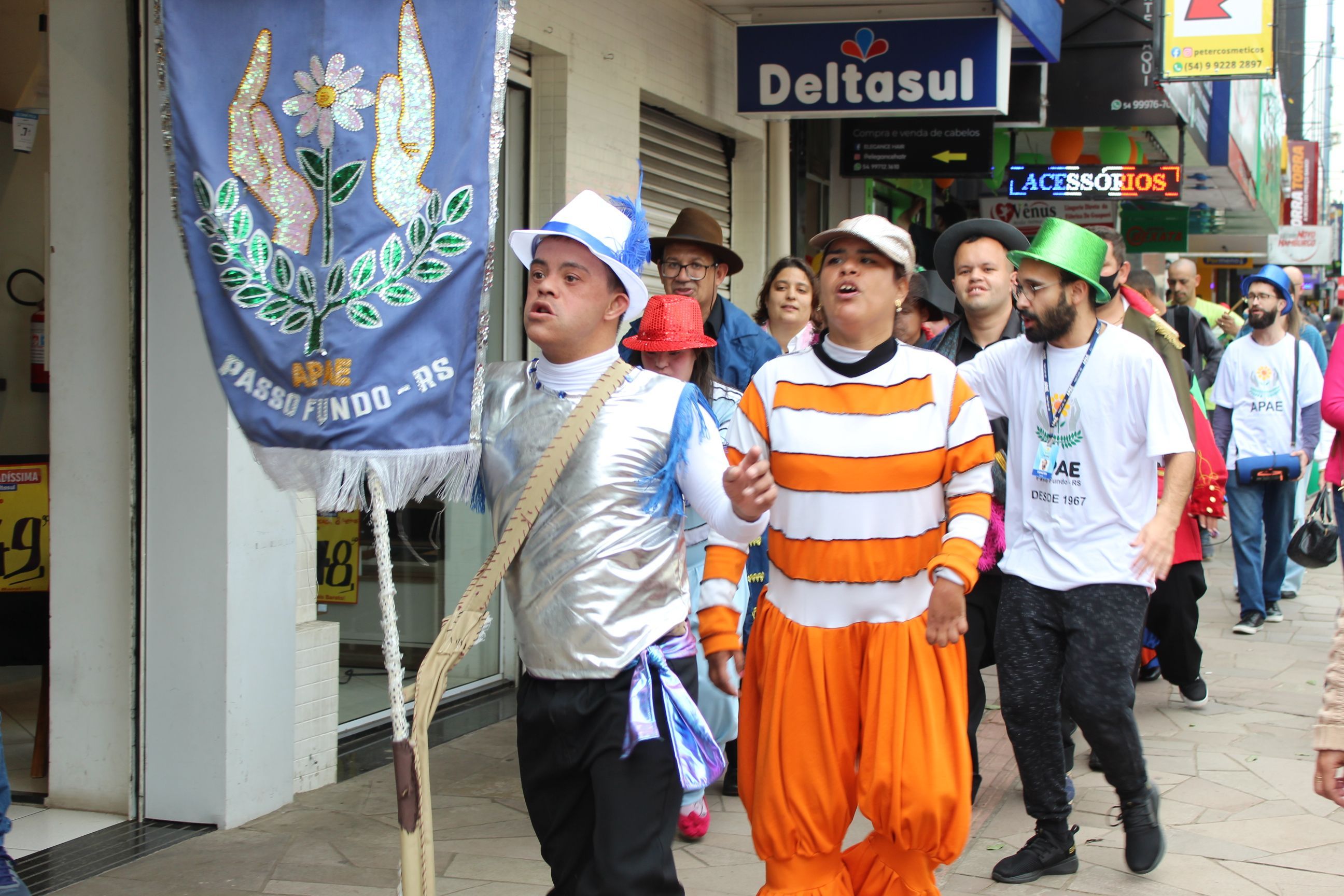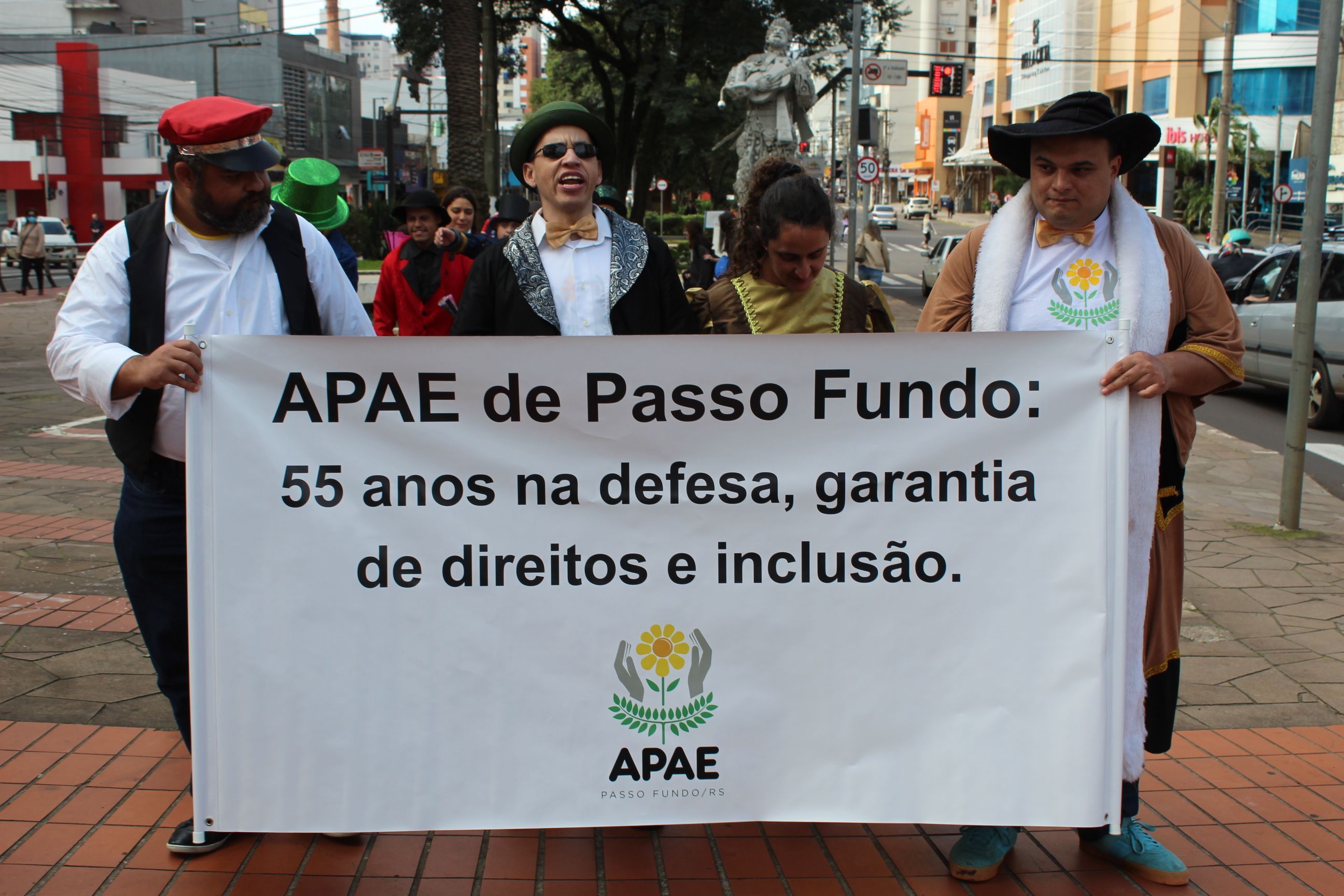 Nesta terça-feira (28), a Apae Passo Fundo celebrou seus 55 anos de fundação. Para a comemoração, foi realizada uma apresentação artística na Praça do Teixeirinha, feita pelos usuários das oficinas de Assistência Social, que prepararam o enredo de samba "APAExonados pela Vida", seguido de cortejo pelos principais passeios públicos da Avenida Brasil.