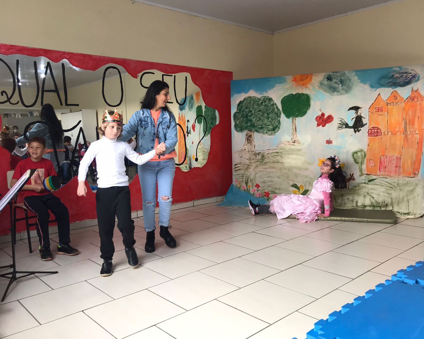 Tiveram apresentações de dança, música, lindos desenhos e atividades físicas.