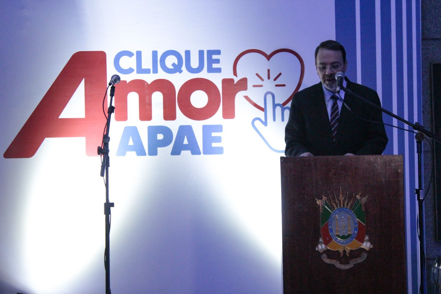 Após o resultado positivo da campanha “Você Não Imagina do Que a Gente é Capaz” e aproveitando a aproximação das festas de fim de ano, em especial o natal, a FEAPAES-RS está inaugurando uma nova iniciativa que garante facilidade para aqueles que gostariam de contribuir com as APAEs dos seus municípios. Além de ser um canal online de arrecadações voluntárias, a ideia é aproximar a população do trabalho de cuidado das 206 unidades de atendimento com seus assistidos em todo o Estado. Intitulada de CLIQUE AMOR APAE, a ação teve seu lançamento no dia 10 de novembro, às 19h, em um evento no Vestíbulo Nobre Erico Verissímo, na Assembleia Legislativa do Estado do Rio Grande do Sul. O Deputado Estadual Paparico Bacchi, representante do parlamento gaúcho, esteve presente no ato. O evento contou com o jornalista Oziris Marins como Mestre de Cerimônias.