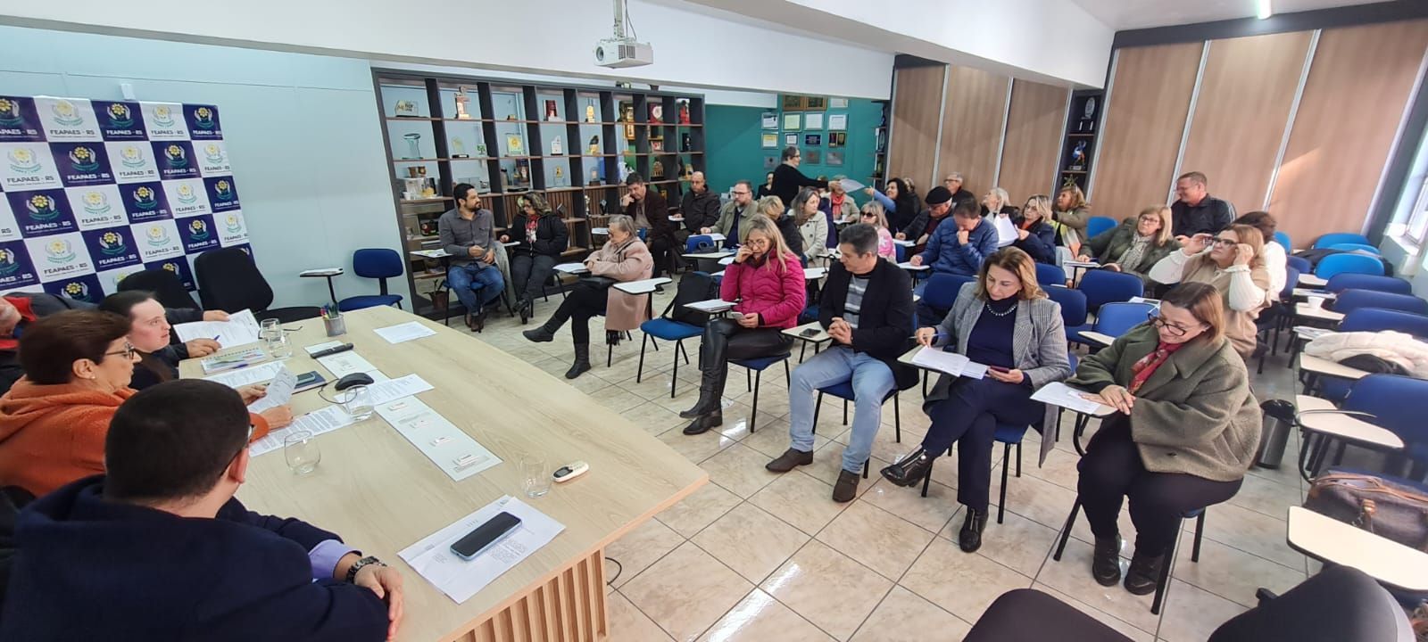Nesta semana aconteceu a reunião com os Conselheiros e Coordenadores da Federação das Apaes do Estado do Rio Grande do Sul (Feapaes-RS). O encontro teve como pautas as orientações para o acesso das Apaes as Emendas Parlamentares da Bancada Gaúcha Federal, participação das Apaes do RS no Congresso Nacional que será realizado em Maceió, entre 29 de Novembro e 01 de Dezembro, informações sobre o Encontro de Gestores e Técnicos das Apaes/RS que será realizado entre 26 e 28 de julho e um balanço das ações e perspectivas para o segundo semestre. Essas reuniões são de fundamental importância porque é através delas que são discutidos os rumos que serão tomados. “Esse é um momento importante em que temos que dar celeridade as atividades do ano de 2023, fazendo um balanço das ações e projetando os rumos para o segundo semestre do ano”, enfatiza Aracy Ledo, presidente da Feapaes.