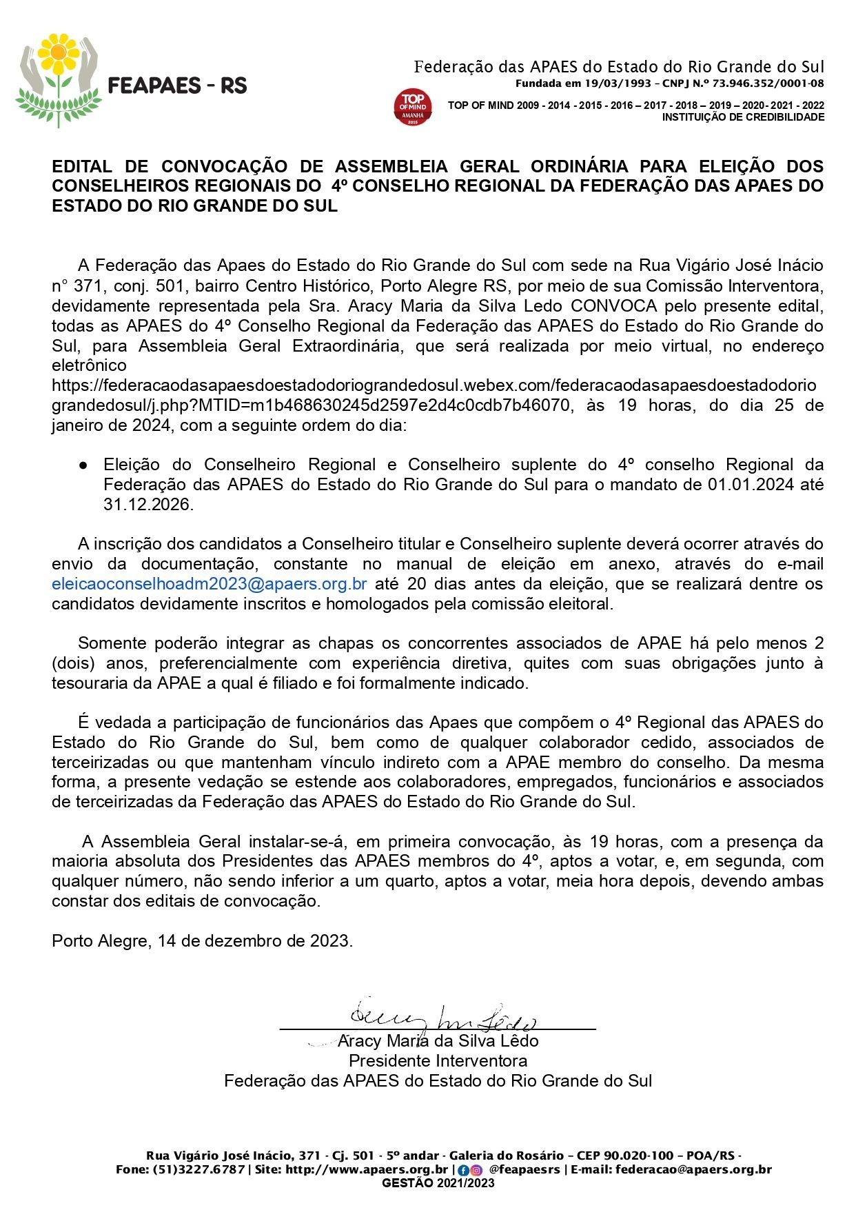 FEDERAÇÃO DAS APAES DO ESTADO DO RIO GRANDE DO SUL