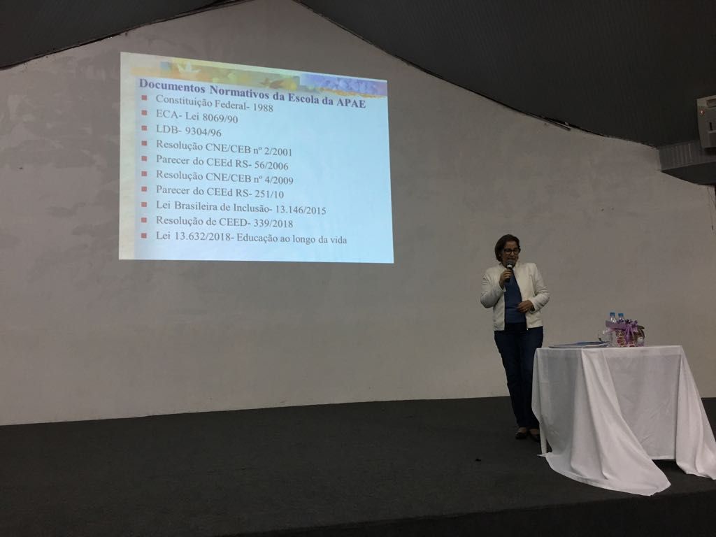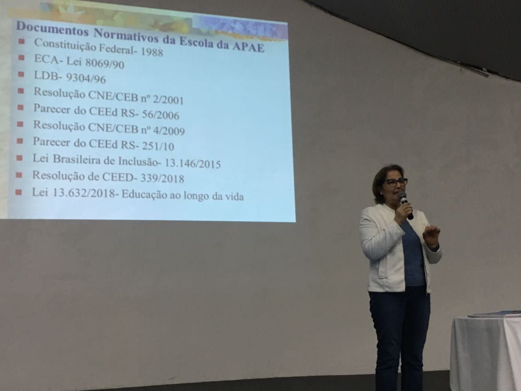 Na programação do dia a Professora Lucia Centena- Coordenadora Estadual de Educação da FEAPAES RS falou sobre a Escola Especial da Rede APAE e seus desafios.