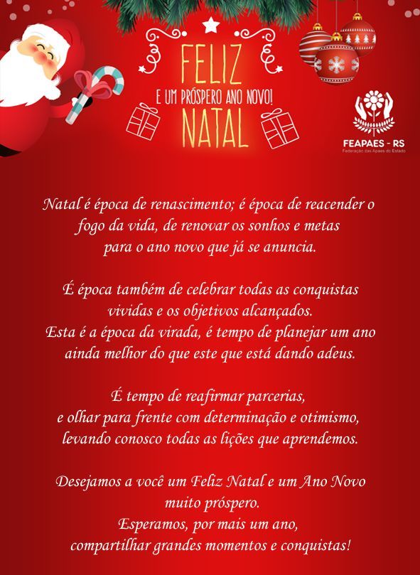 Desejo um Natal de amor e alegria e um Ano Novo em que todos os desafios se transformem num caminho de plena realização.